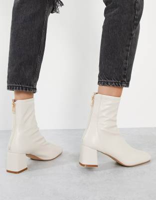 Raid Mid Heel Sock Boots in cream-White