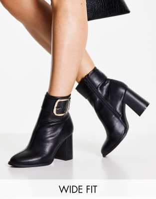 ASOS Design Wide Fit Repeat Block Heel Buckle Boots in Black